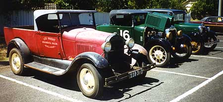 More History!Bob Waight's "Mickey Mouse" Racer and one of David Waight's 'A' Pickups (left). The Old Tin Aussie Ute and Dave & Glenn Waight's 'A' Roadster Hill Climb Champion (right). Click to see bigger pictures! 'A' Pickup under construction above left. For more information on these ready to go vehicles see our 'A' Pickup page. Shown right is the engine fitted to Dave & Glenn's No.16 Hill Climb Roadster. Click to see bigger pictures! The Old Tin retro Pickup 'A' Bomb "Felix" to the left and our latest vehicle o the right, an 'A' Model Delivery which is our parts hauler and swap meet vehicle. Click to see bigger pictures! David Waight Proud A Model Dealer & Four Banger Enthusiast