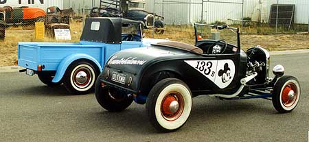 More History!Bob Waight's "Mickey Mouse" Racer and one of David Waight's 'A' Pickups (left). The Old Tin Aussie Ute and Dave & Glenn Waight's 'A' Roadster Hill Climb Champion (right). Click to see bigger pictures! 'A' Pickup under construction above left. For more information on these ready to go vehicles see our 'A' Pickup page. Shown right is the engine fitted to Dave & Glenn's No.16 Hill Climb Roadster. Click to see bigger pictures! The Old Tin retro Pickup 'A' Bomb "Felix" to the left and our latest vehicle o the right, an 'A' Model Delivery which is our parts hauler and swap meet vehicle. Click to see bigger pictures! David Waight Proud A Model Dealer & Four Banger Enthusiast